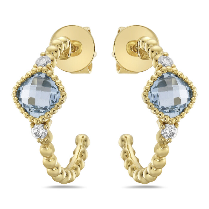14k yellow gold .55ctw Aquamarine and diamond beaded earrings with post