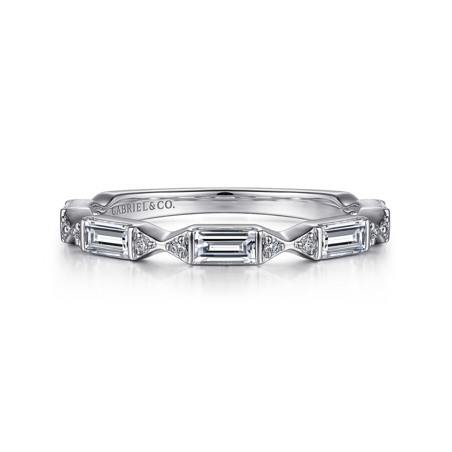 14k white gold baguette and round diamond wedding band
