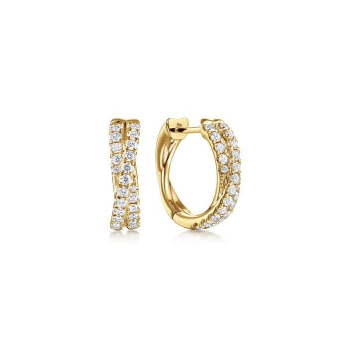 14k yellow gold crisscross design hugger earrings .51ctw diamonds