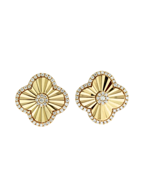 14k yellow gold diamond cut clover design earrings with .30ctw diamonds and post