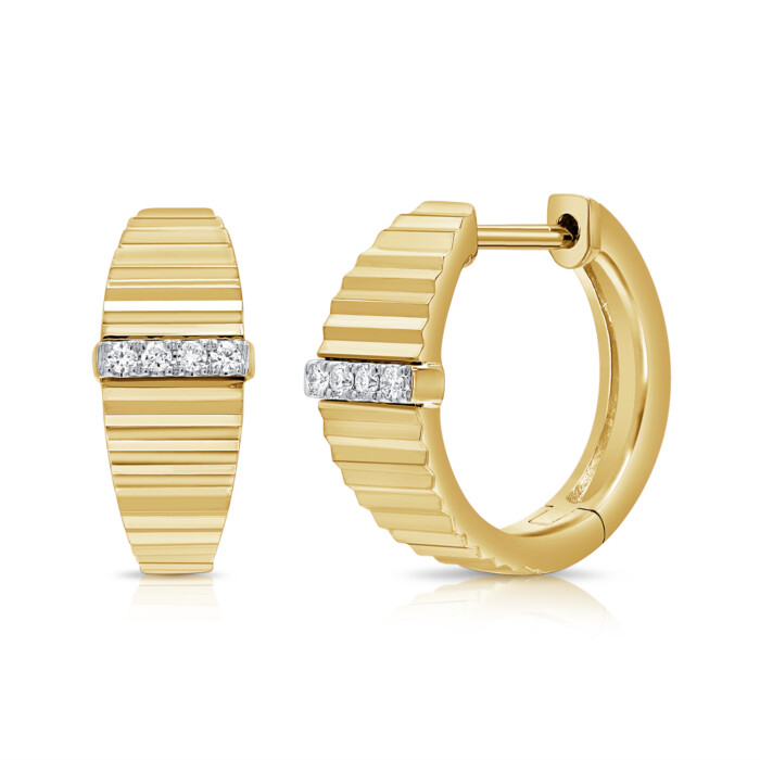 14k yellow gold hugger earrings with .08ctw diamonds and diamond cut design