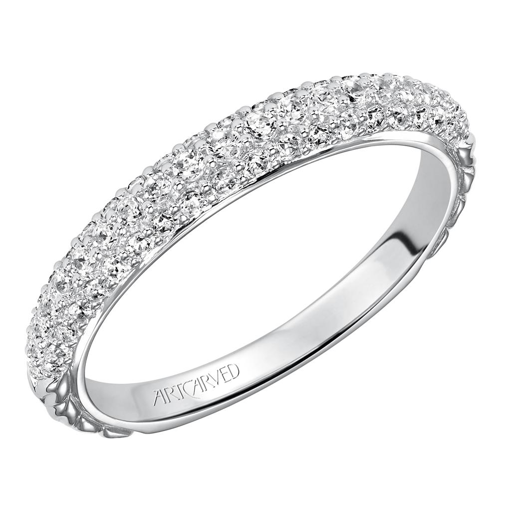 14k white gold ArtCarved engraved sides wedding band with .50ctw diamonds