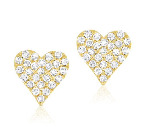 14k yellow gold heart shape stud earrings with .14ctw pave set diamonds
