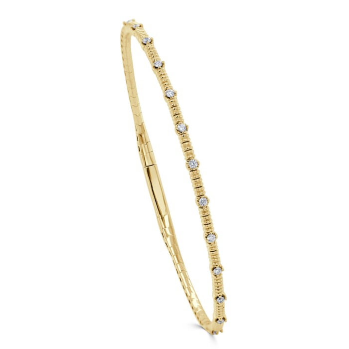 14k yellow gold flexible bangle with .20ctw small round diamond accents