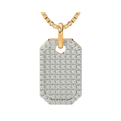 14k two-tone mini dog tag pave set diamond necklace .25ctw on 18″ chain