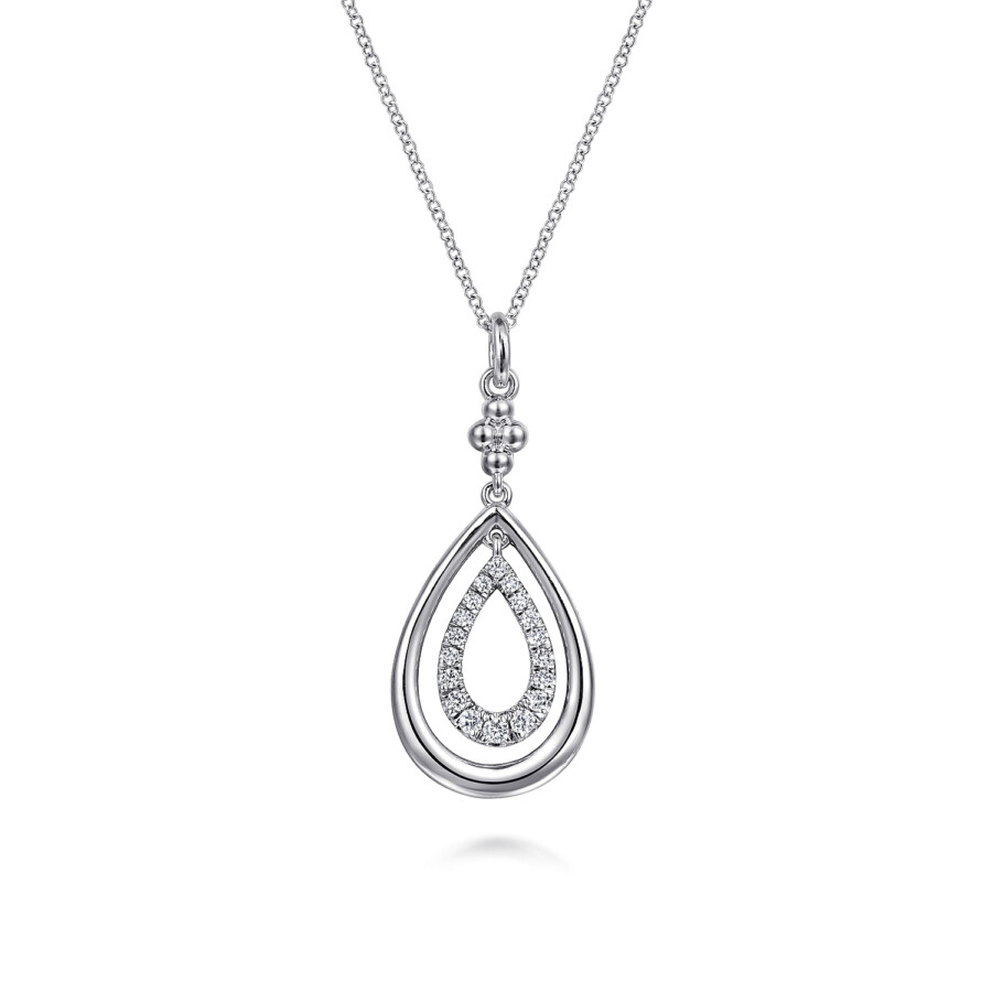 Sterling Silver Bujukan style pear shape design necklace with .33ctw white sapphires on 17.5″ adjustable chain