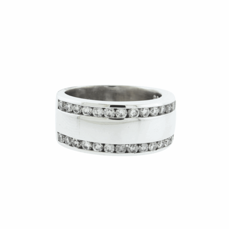 14k white gold wide 2-row diamond band, 1.10ctw